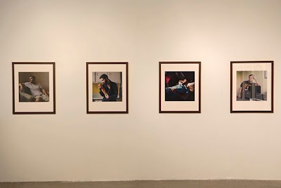 My photographs up on the wall at Lara Evoy's loft for tonight's Matiere Grise workshop. (from the top: "Why am I marrying him?", "Model Husband", and the new and as yet unresolved "Land of Plenty")